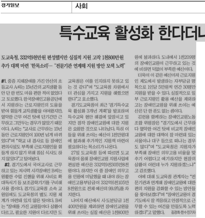 <°æ±âÀϺ¸>´Â 28ÀÏ 7¸é <Ư¼ö±³À° Ȱ¼ºÈ ÇÑ´Ù´õ´Ï...Àå¾ÖÀÎ ±³¿øÀº ¿Ü¸é> - µµ±³À°Ã», 332¾ï 9õ¸¸¿ø Æí¼ºÇßÁö¸¸ ½ÇÁúÀû Áö¿ø °íÀÛ 1õ 800¸¸¿ø ±â»ç¿¡¼