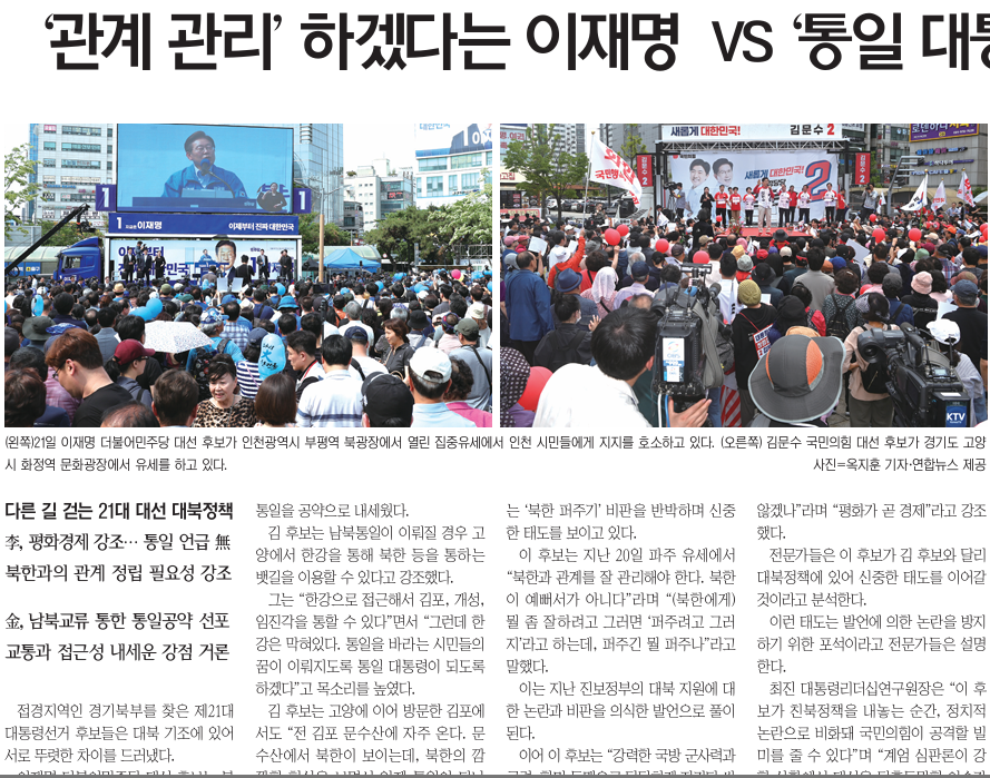 <°æ±â½Å¹®>Àº 22ÀÏ 3¸é <´Ù¸¥ ±æ °È´Â 21´ë ´ë¼± ´ëºÏÁ¤Ã¥> ±â»ç¿¡¼ ¡°ÀÌÀç¸í, ÆòÈ °æÁ¦ °Á¶¡¦ÅëÀÏ ¾ð±Þ ¹« ºÏÇѰúÀÇ °ü°è Á¤¸³ Çʿ伺 °Á¶, ±è¹®¼ö, ³²ºÏ ±³·ù ÅëÇÑ ÅëÀÏ °ø¾à ¼±Æ÷ ±³Åë°ú Á¢±Ù¼º ³»¼¼¿î °Á¡ °Å·Ð¡±À¸·Î ¿ä¾à º¸µµÇß´Ù. |
