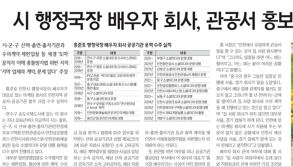 <°æ±â½Å¹®>Àº 9ÀÏ ÀÎõÆÇ 1¸é <½Ã ÇàÁ¤±¹Àå ¹è¿ìÀÚ È¸»ç, °ü°ø¼ È«º¸ ¿ë¿ª ¼öÁÖ '³í¶õ'>, 11ÀÏ ÀÎõÆÇ 1¸é <½Ã ÇàÁ¤±¹Àå, ¹è¿ìÀÚ È¸»ç ÀÏ¿¡ Àû±Ø °ü¿©ÇØ ³õ°í '¹ß»'>, 13ÀÏ ÀÎõÆÇ 1¸é <Áß±¸¡¤¿¬¼ö±¸, ½Ã ÇàÁ¤±¹Àå ¹è¿ìÀÚ È¸»ç¿Í '¼ö»óÇÑ Ä¿³Ø¼Ç'> ±â»ç¿¡¼ ÀÎõ½Ã ÇàÁ¤±¹ÀåÀÇ ¹è¿ìÀÚ°¡ ´ëÇ¥·Î ÀÖ´Â ¸¶ÄÉÆÃ È¸»çÀÇ ÀÎõÁö¿ª °ü°ø¼¡¤°ø°ø±â°ü ¹ßÁÖ »ç¾÷ ¼öÁÖ ½ÇÀû°ú °ü°ø¼ È«º¸ ¿ë¿ª ¼öÁÖ, ÇàÁ¤±¹ÀåÀÇ Àû±Ø °ü¿©, Áß±¸¡¤¿¬¼ö±¸°¡ ÇàÁ¤±¹Àå ¹è¿ìÀÚ¿Í ¼ö»óÇÑ Ä¿³Ø¼Ç ÀÇȤÀ» º¸µµÇß´Ù. |
