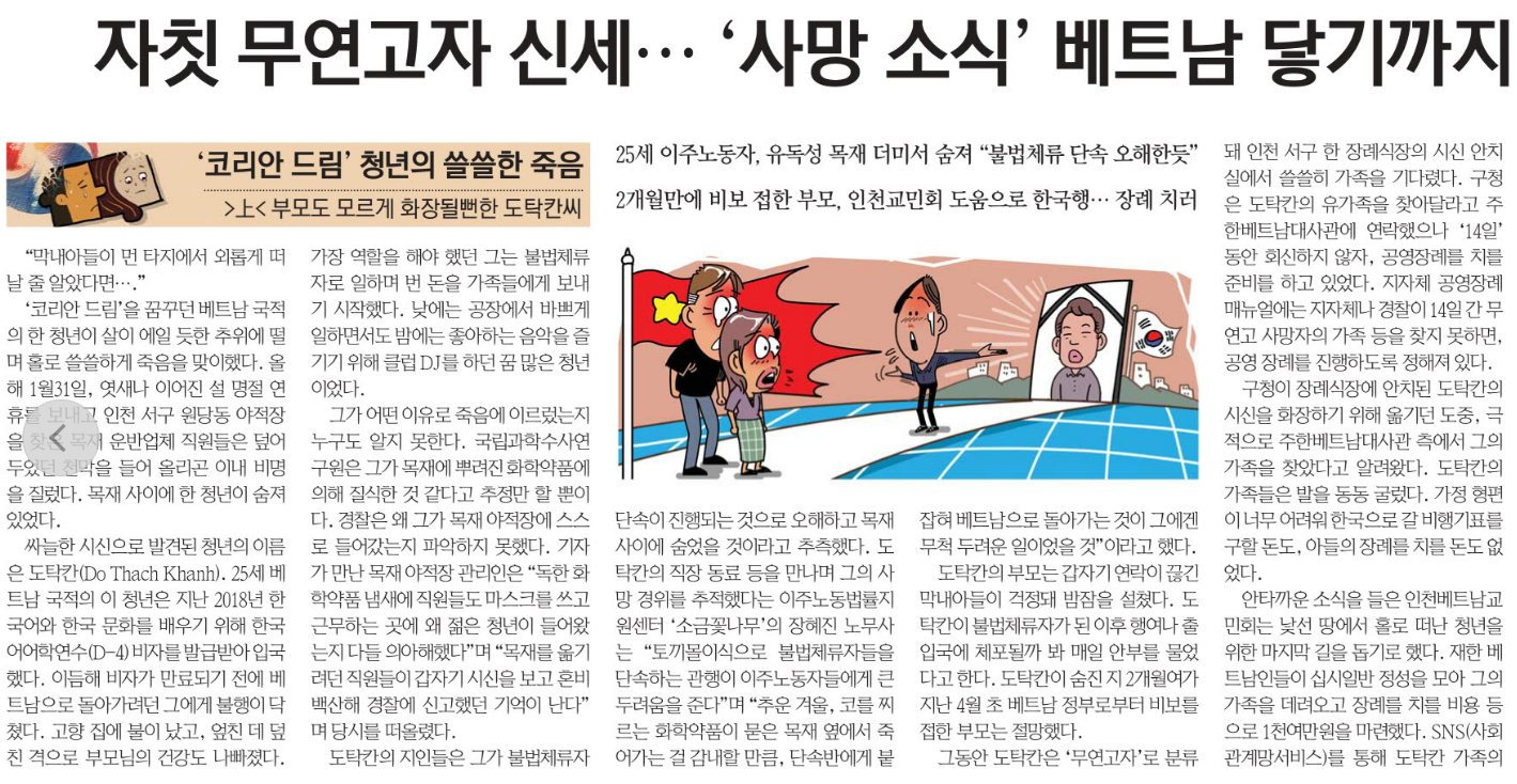 19ÀÏ 6¸é <¡®ÄÚ¸®¾È µå¸²¡¯ û³âÀÇ ¾µ¾µÇÑ Á×À½ Áß. ¡®¿Ü±¹ÀÎ »ç¸Á¡¯ »ý·«µÈ ¿øÀÎ ±Ô¸í>