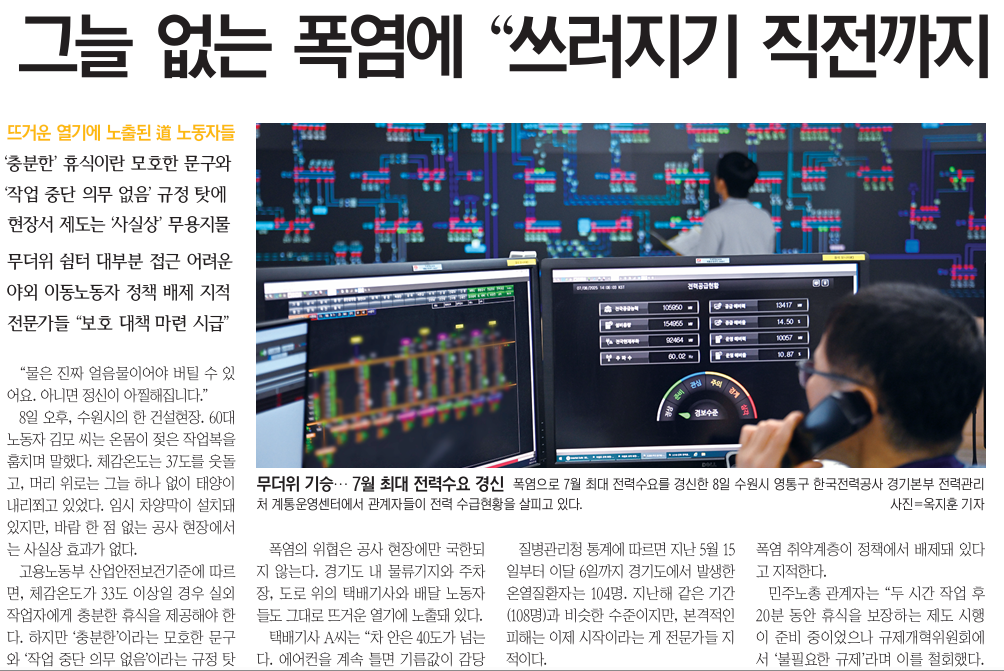 [7¿ù 2ÁÖÂ÷ ¸ð´ÏÅÍ] Æø¿°¿¡ ÀÏÇÏ´Â ³ëµ¿ÀÚµéÀÇ ¿¾ÇÇÑ ³ëµ¿È¯°æÀ» º¸µµÇÑ <°æ±â½Å¹®> µî |