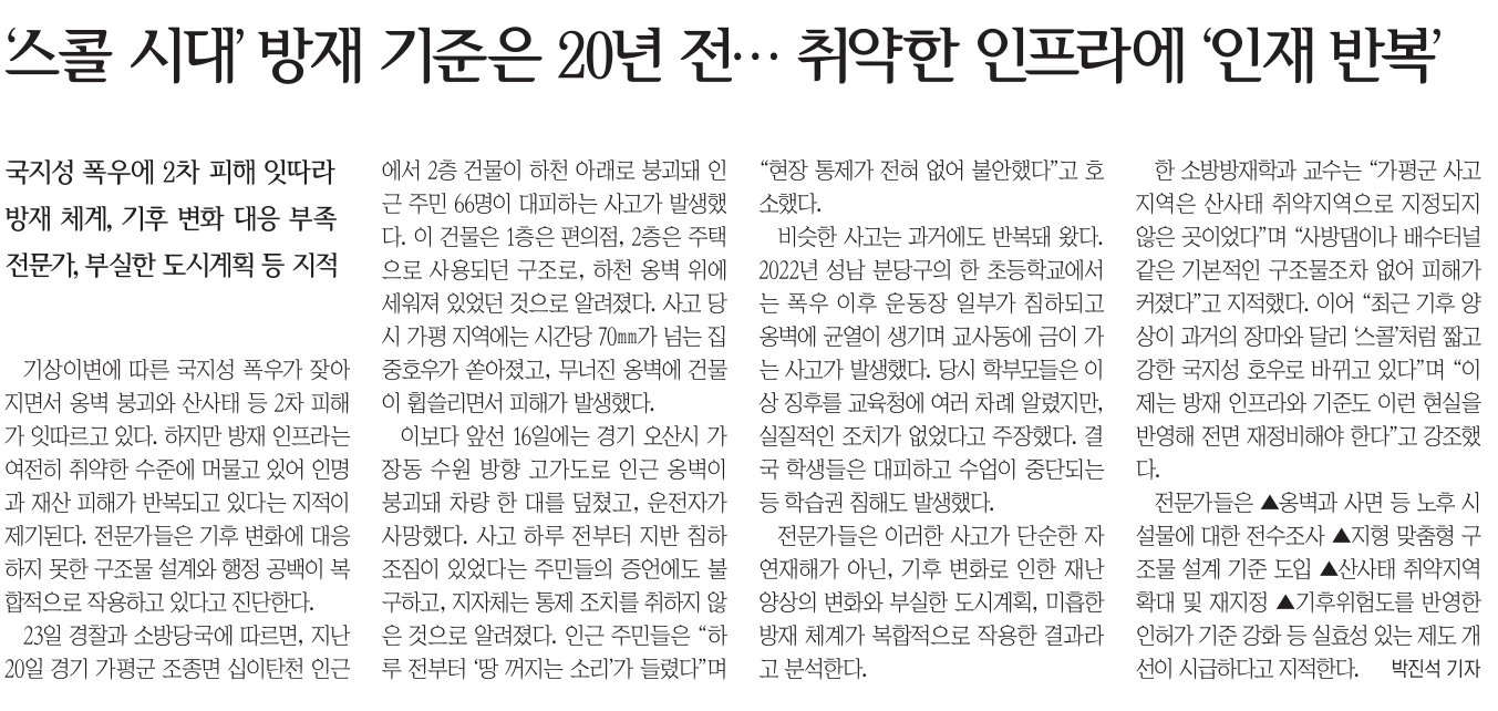 [7¿ù 4ÁÖÂ÷ ¸ð´ÏÅÍ] ÁýÁßÈ£¿ì ÇÇÇØ, ¹æÀç ½Ã½ºÅÛÀÇ ¹®Á¦¸¦ º¸µµÇÑ <°æ±â½Å¹®> ¿Ü |