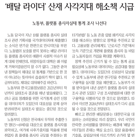 <°æ±â½Å¹®>Àº 17ÀÏ 13¸é <¹è´Þ ¶óÀÌ´õ »êÀç »ç°¢Áö´ë ÇØ¼ÒÃ¥ ½Ã±Þ> »ç¼³¿¡¼ ¡°Áö³ÇØ Åë°è ±âÁØÀ¸·Î Ç÷§Æû Á¾»çÀÚ´Â 88¸¸ 3000¸íÀ¸·Î Áý°èµÆ´Ù. ÇÏÁö¸¸ ³ëµ¿ºÎ´Â Ư¼ö°í¿ë Á¾»çÀÚ¿Í ÇÕÃÄ ¾à 144¸¸ ¸íÀ¸·Î ÃßÁ¤Çϰí ÀÖ´Ù. À̵éÀº ±Ù·Î±âÁعý»ó ³ëµ¿ÀÚ°¡ ¾Æ´Ï¶ó´Â ÀÌÀ¯·Î ³ëµ¿¹ýÀÇ º¸È£¸¦ ¹ÞÁö ¸øÇϰí, °¢Á¾ ¾ÈÀüº¸°Ç ¹ý·É ´ë»ó¿¡¼ ¹þ¾î³ª »êÀç ¡®»ç°¢Áö´ë¡¯¿¡ ³õ¿©ÀÖ´Â °Ô Çö½ÇÀÌ´Ù.¡¦¼¼°è ÃÖ°íÀÇ ¹è´Þ¹®È¸¦ ´©¸®´Â ¾È¶ôÇÑ ÀÏ»óÀÇ µÚÆí¿¡ ±× ´©±¸µµ ¹ÌºñÇÑ Á¦µµ·Î ÀÎÇØ ´«¹°Áþ´Â À̰¡ À־ ¾È µÈ´Ù. À¢¸¸ÇÑ ³ëµ¿ÀÚµéÀÌ ´Ù ´©¸®°Ô µÈ »êÀ纸Çè ÇýÅÃÀ» ° °Ç³Ê ºÒ º¸µí ¹ß¸¸ µ¿µ¿ ±¼¸®´Â Ç÷§Æû Á¾»çÀÚµéÀ» ¹æÄ¡Çؼ´Â ¾È µÈ´Ù. ±×µéµµ °øÆòÇÏ°Ô ´©¸± ¼ö ÀÖ´Â ÆòµîÇÑ Á¦µµ¸¦ ÇϷ绡¸® ±¸ÃàÇÏ±æ ¹Ù¶õ´Ù. ¡®»ç¶÷ÀÌ ¸ðµÎ ºüÁü¾øÀÌ »ç¶÷´ä°Ô »ç´Â ¼¼»ó¡¯À» ²Þ²Ù´Â ÀÏÀº °áÄÚ »çÄ¡°¡ ¾Æ´Ï´Ù.¡±¶ó°í »êÀ纸ÇèÀÇ ÇýÅÃÀ» ¹ÞÁö ¸øÇÏ´Â ¹è´Þ ¶óÀÌ´õÀÇ ¿¾ÇÇÑ ³ëµ¿È¯°æÀ» ºñÆÇ, ´ëÃ¥À» Ã˱¸Çß´Ù. |