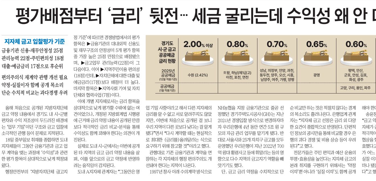 19ÀÏ 3¸é <ÁöÀÚü ±Ý°í ÀÔÂû Æò°¡ ±âÁØ-Æò°¡ ¹èÁ¡ºÎÅÍ ¡®±Ý¸® µÞÀü¡¦¼¼±Ý ±¼¸®´Âµ¥ ¼öÀͼº ¿Ö ¾È µûÁö³ª> |
